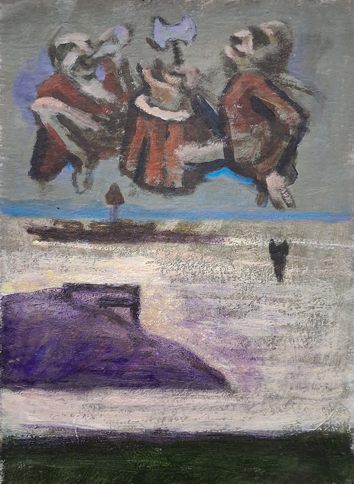 Vaknar tidigt. Dvala mellan 4 och halv 6. Tanken om rodden. Att röra sig baklänges in i framtiden, att förstå världen av vad jag ser passera bakåt. Berättelsen, symbolen och förståndets trevande. Att färdas på ytan, att söka sammanhanget.Färden i landskapet ger också berättelsen om folken och deras symboler. Föreställer mig att jag lämnar St. Petersburg motströms på Neva och ser Tatlins torn helt kontrafaktiskt torna upp sig i kölvattnet. Minns den (dåtida) samtida konstkritikern Punins vision kring Tatlins dubbelspiral som lyfter sig från geopolitikens eviga strider om landområdena.