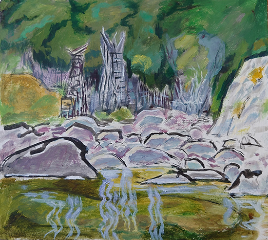 Vaknar tidigt. Dvala mellan 4 och halv 6. Tanken om rodden. Att röra sig baklänges in i framtiden, att förstå världen av vad jag ser passera bakåt. Berättelsen, symbolen och förståndets trevande. Att färdas på ytan, att söka sammanhanget.Färden i landskapet ger också berättelsen om folken och deras symboler. Föreställer mig att jag lämnar St. Petersburg motströms på Neva och ser Tatlins torn helt kontrafaktiskt torna upp sig i kölvattnet. Minns den (dåtida) samtida konstkritikern Punins vision kring Tatlins dubbelspiral som lyfter sig från geopolitikens eviga strider om landområdena.